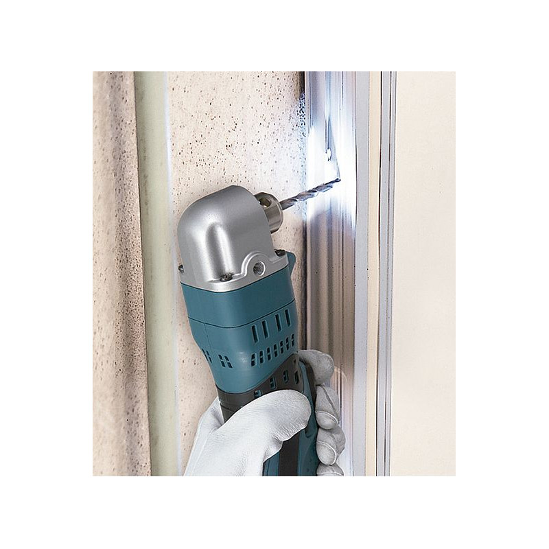 Taladro angular de 18 V y 1,8 Kg de peso, para taladrado en madera y metal. Se suministra con baterías de 4.0 Ah, cargador rápido y maletín de PVC tipo MakPac.