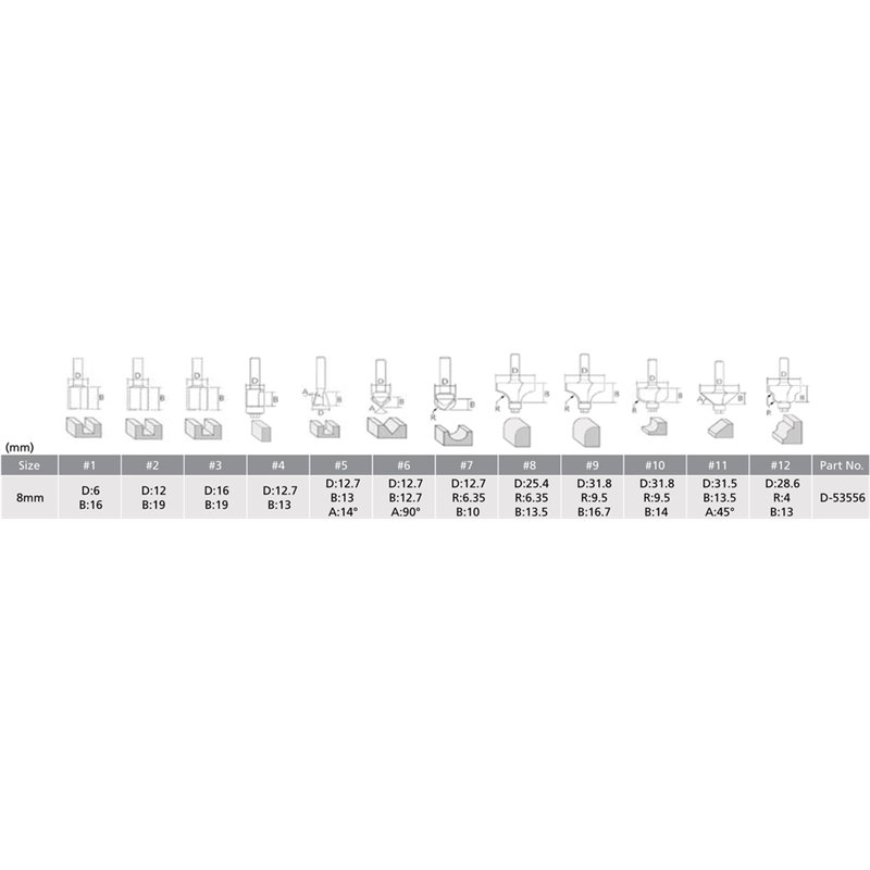 12 pcs router estuche de puntas. inserción dia.(D): 8 mm