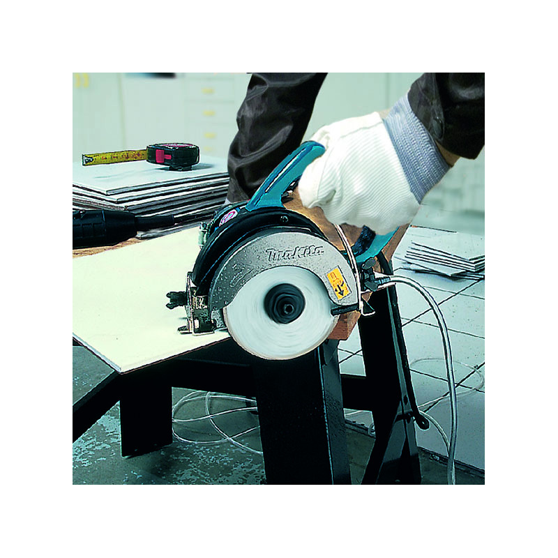 Cortador MAKITA para disco de diamante de 860 W y 5,2 Kg de peso, para disco de diamante de 125 mm de diámetro. Para corte húmedo.