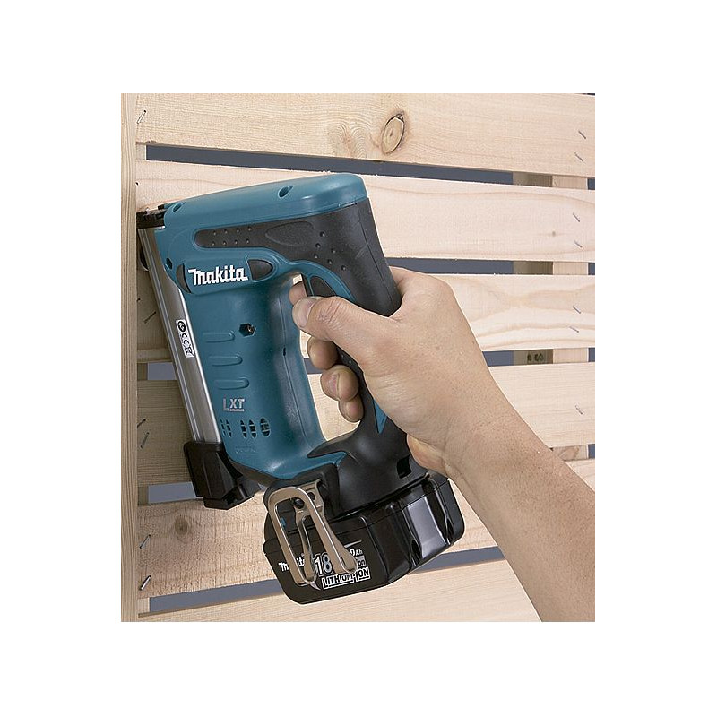 Grapadora de 18V y 2,4 Kg de peso, para empleo con grapas de 10 mm de ancho y de hasta 22 mm de longitud. Se suministra en maletín de PVC, con baterías de 4.0Ah y cargador rápido.