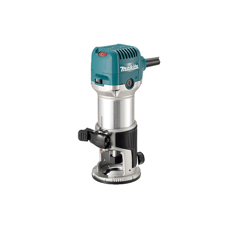 Fresadora multifunción de 710W y 1,8Kg de peso y entrada de fresas de 6 y 8mm. Con capacidad de fesado de hasta 35mm. Permite su uso con diferentes bases: inclinable, plana y recta. Equipada únicamente con la base recta.